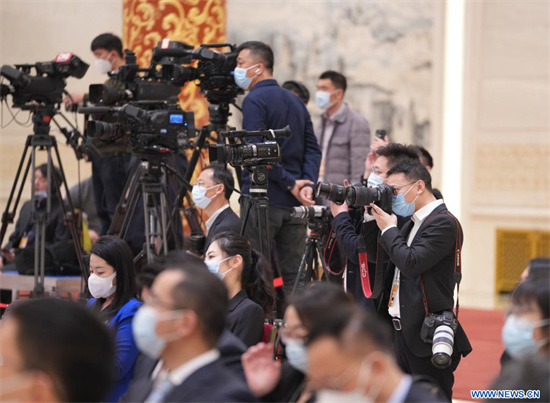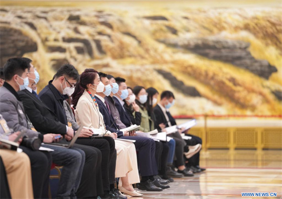Des journalistes assistent à une conférence de presse à laquelle participent des dirigeants des comités centraux des partis politiques non communistes et de la Fédération nationale de l'industrie et du commerce de Chine lors de la première session du 14e Comité national de la Conférence consultative politique du peuple chinois (CCPPC) au Grand Palais du Peuple à Beijing, capitale de la Chine, le 5 mars 2023. (Photo : Cao Can)