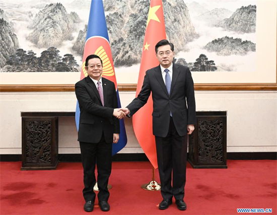 Qin Gang, conseiller d'Etat et ministre des Affaires étrangères de la Chine, a rencontré lundi le secrétaire général de l'Association des nations de l'Asie du Sud-Est (ASEAN), Kao Kim Hourn.