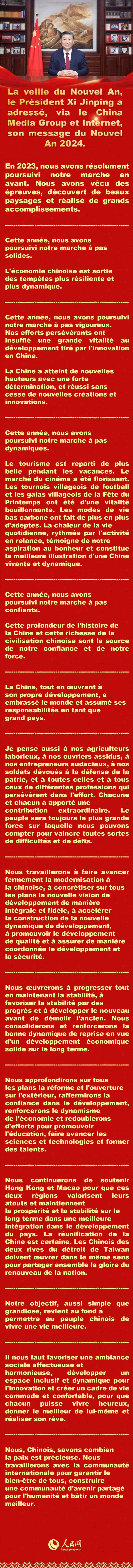 Les points saillants du message du Président Xi Jinping pour le Nouvel An 2024