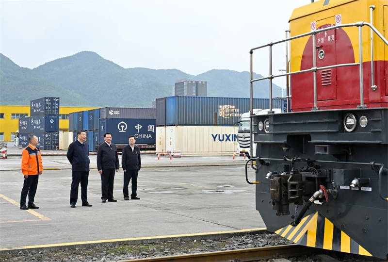 M. Xi a également visité une station de conteneurs à Chongqing, où il a mis l'accent sur l'importance de la logistique pour le développement de la région de l'ouest.