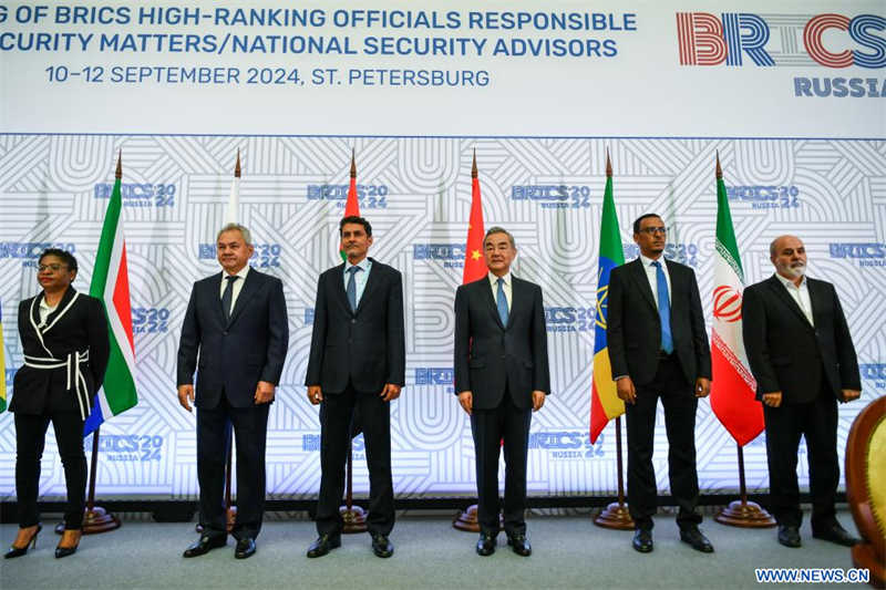 Lors d'une réunion de haut niveau à Saint-Pétersbourg, Wang Yi, directeur du Bureau de la Commission centrale des affaires étrangères, a appelé mercredi les pays des BRICS à s'unir pour faire face aux menaces pesant sur la sécurité.