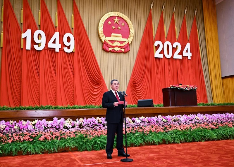 Li Qiang a présidé la réception. Zhao Leji, Wang Huning, Cai Qi, Ding Xuexiang, Li Xi et Han Zheng ont assisté à l'événement avec environ 3.000 invités chinois et étrangers.
