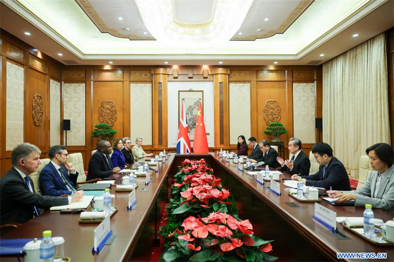 Le ministre chinois des Affaires étrangères Wang Yi s'est entretenu vendredi, à Beijing, avec le secrétaire d'Etat aux Affaires étrangères, au Commonwealth et au Développement du Royaume-Uni, David Lammy.