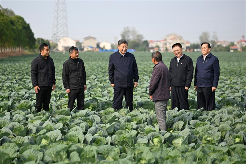 Mardi matin, M. Xi a visité une ferme mara?chère dans le bourg de Jiayu, dans la ville de Xianning.