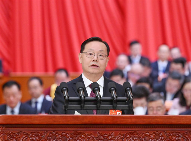 Wang Huning, président du Comité national de la CCPPC, a présenté un rapport de travail au nom du Comité permanent du Comité national de la CCPPC.