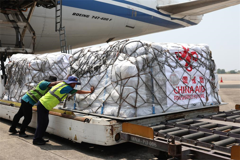 La deuxième livraison d'aide humanitaire d'urgence envoyée par le gouvernement chinois suite au séisme dévastateur au Myanmar est arrivée jeudi à l'aéroport international de Yangon.
