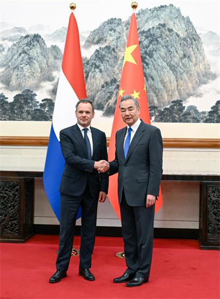 Le ministre chinois des Affaires étrangères Wang Yi s'est entretenu jeudi à Beijing avec le ministre néerlandais des Affaires étrangères Caspar Veldkamp.