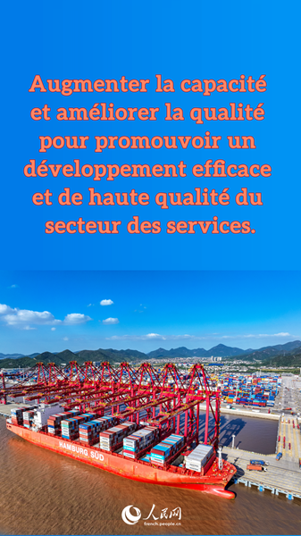 Mettre en ?uvre des actions visant à accro?tre la capacité et à améliorer la qualité du secteur des services, à améliorer le niveau de développement intégré du secteur des services modernes, de la fabrication de pointe et de l'agriculture moderne, et à ouvrir un nouvel espace pour la croissance économique tout en répondant mieux aux besoins de la population pour une vie meilleure.