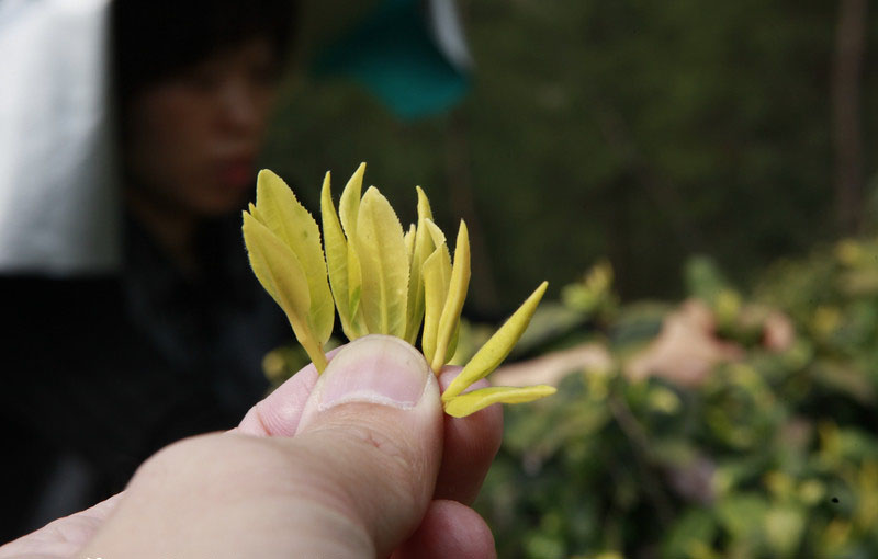 Aujourd'hui, le thé jaune ne se trouve que dans quelques endroits en Chine, essentiellement du fait qu'il est difficile à traiter. Seules trois variétés sont bien connues : le Meng Ding de la Province du Sichuan, les Aiguilles d'Argent de Junshan du Hunan et les Bourgeons Jaunes de Huoshan de l'Anhui. Les feuilles et le thé infusé sont d'une belle couleur jaune-vert, et le go?t en est frais, avec une légère note poivrée.