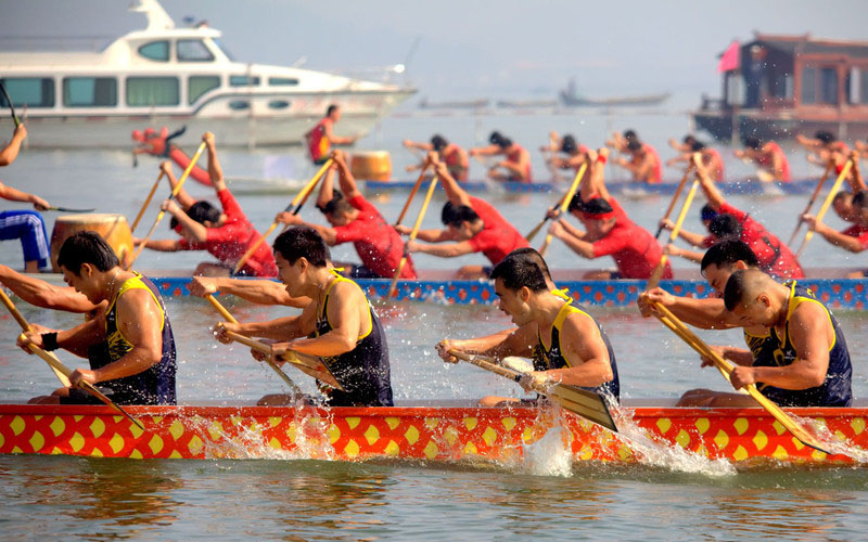 Les courses de bateaux-dragons sont le c?ur de la fête. Les équipes en compétition dirigent leurs bateaux colorés vers l'avant au rythme des battements de tambours. Ces courses passionnantes tirent leur inspiration des vaillants efforts des villageois pour sauver Chu Yuan de la rivière Mi Lo. Cette tradition est restée intacte depuis des siècles.