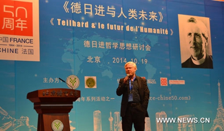 Un colloque baptisé ? Teilhard et le future de l'Humanité ? s'est tenu dimanche dans l'Université des langues et des cultures de Pékin, à Beijing, capitale de la Chine. Plusieurs experts chinois et fran?ais ont donné des discours autour des relations entre Teilhard et la Chine lors de ce salon culturel sino-fran?ais organisé dans le cadre du 50e anniversaire de l'établissement des relations diplomatiques entre la Chine et la France.