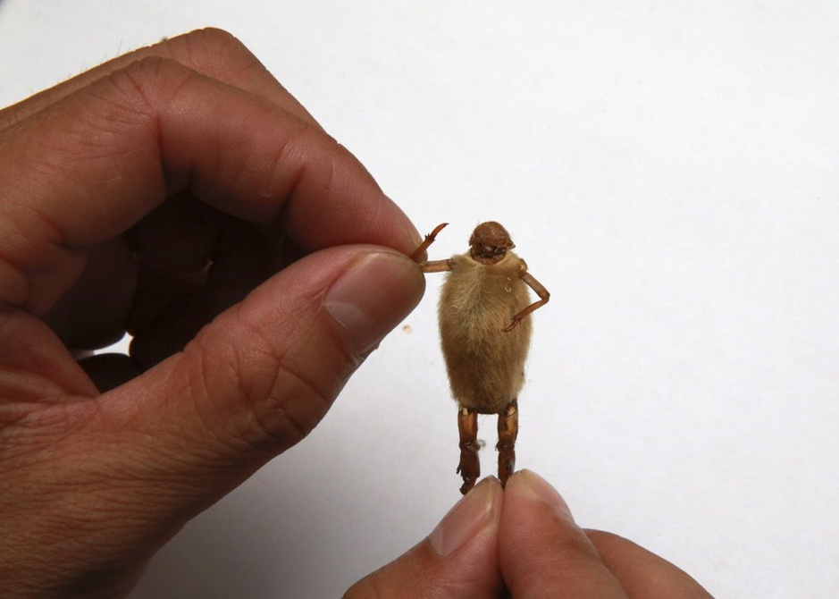 "Maohou", une oeuvre artisanale en forme de singe réalisée à partir d'une dépouille de cigale.