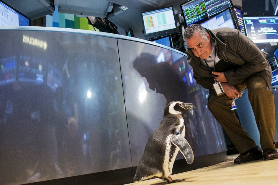 Un pingouin à la Bourse de New York, le 5 janvier 2014.
