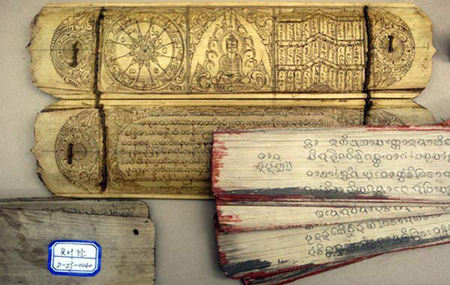 Des écrits préservés sur des feuilles de palmier, les sutras des bouddhistes de Xishuangbanna, la province chinoise du Yunnan, le 15 ao?t 2010.
