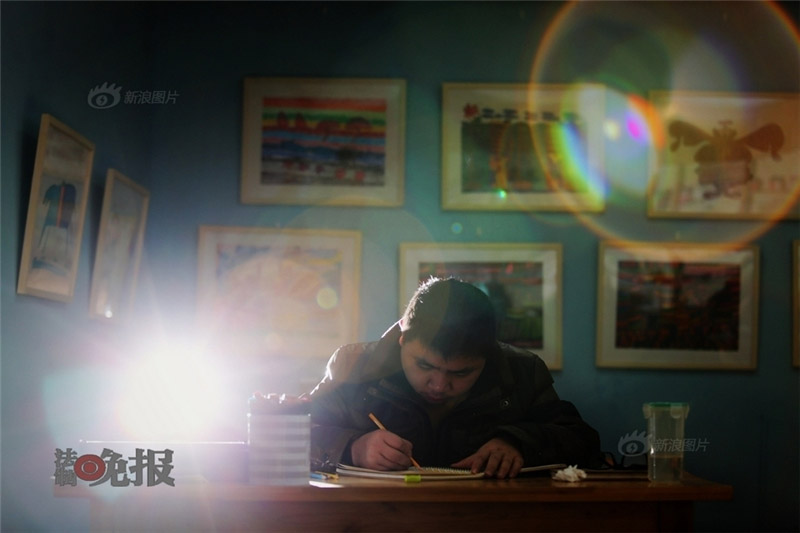 Wu Tao, qui est schizophrène, dessine dans le studio. Ces artistes ont des perceptions très précises de ce qui les entoure, et cela les inspire souvent.