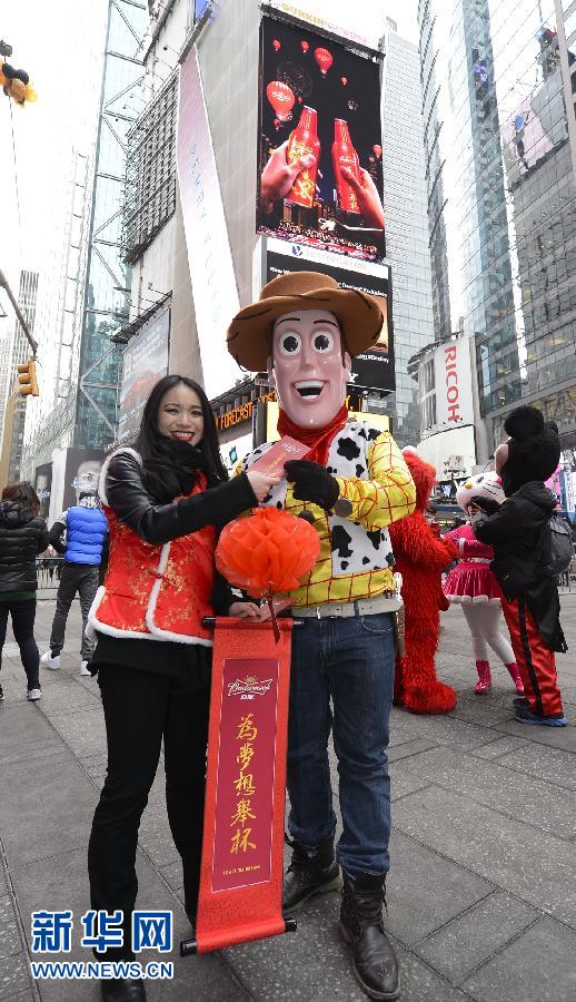 Une jeune femme a offert une enveloppe rouge à un habitant déguisé en Woody de Toy Story.