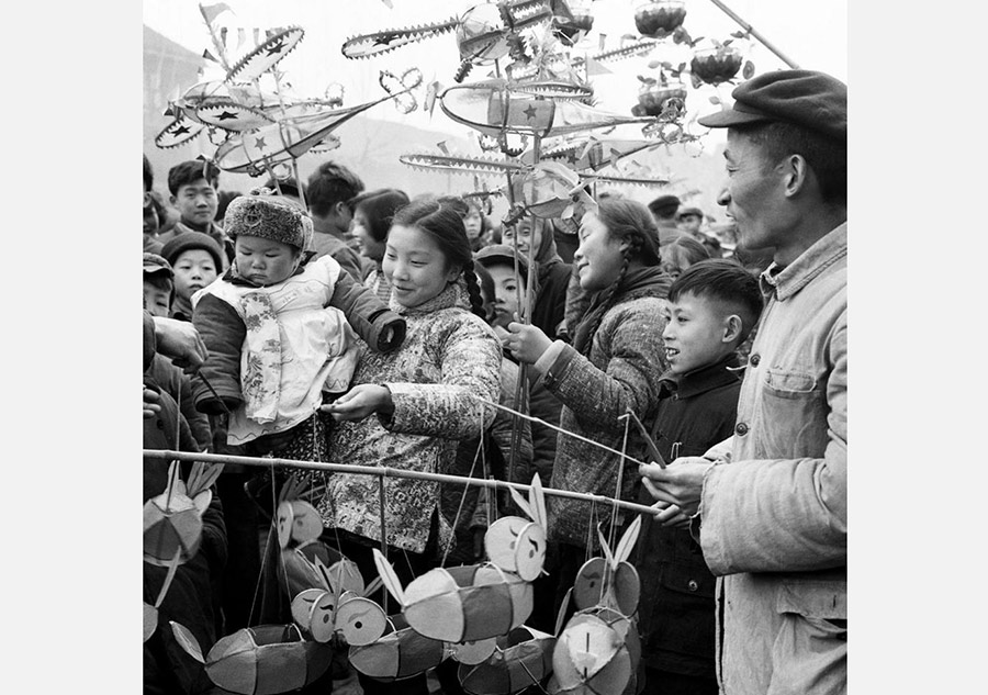Des habitants achètent des lanternes lors d’une foire à Nanjing pendant la Fête du Printemps en 1961. [Photo/Xinhua]