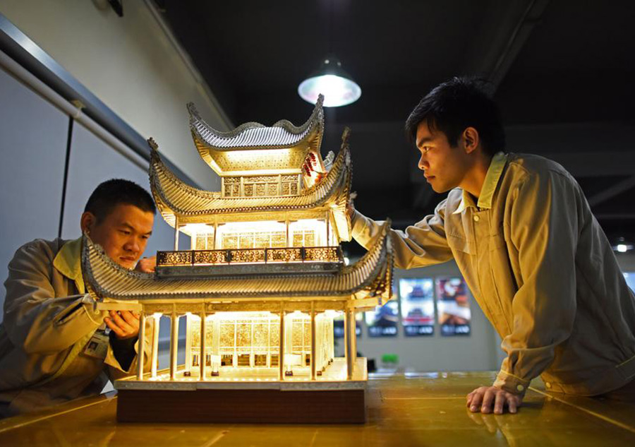 Les apprentis vérifient chaque détail d'une ?uvre. [Photo / Xinhua ]