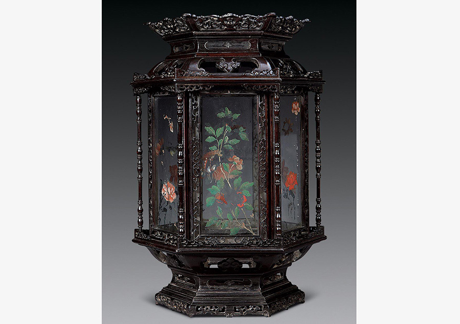 Une lanterne de palais (bois de Santal) de la période du règne de l'empereur Qianlong cédée pour 392 000 yuans (58 800 dollars) lors d'une vente aux enchères en 2009. [Photo / artron.net]