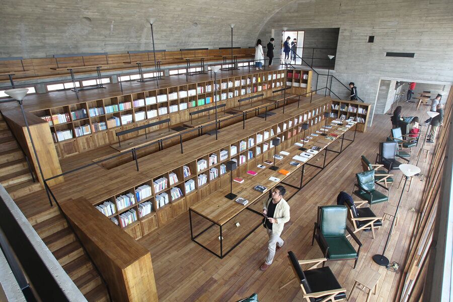 Les lecteurs d'une bibliothèque isolée qui se trouve à des centaines de mètres de Beidaihe, une station balnéaire populaire habituellement bondée de touristes, dans la Province du Hebei en Chine du Nord, le 12 mai 2015. La bibliothèque de deux étages, construite pour un usage public, est également un endroit agréable pour regarder les vagues et les marées. [Photo / CFP]
