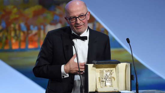| Jacques Audiard lors de la remise de la Palme d'Or. |
