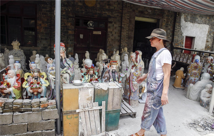 L' artiste australienne De Las Vegas est arrivée il y a un an à Jingdezhen avec son enfant de 2 ans et demi, elle travaille la journée dans son studio et passe la nuit dans une auberge de jeunesse. L'atmosphère culturelle profonde qui règne ici lui permet de mieux poursuivre son rêve. [Photo/CFP]