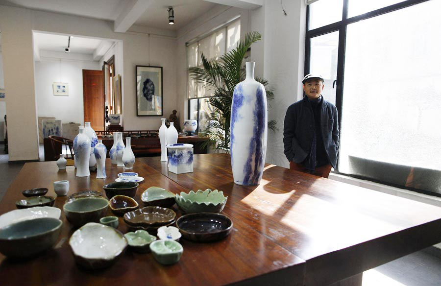Après l'obtention de son dipl?me, Gan Daofu, de la province de l'Anhui, a d'abord travaillé dans une entreprise de production de céramique. Six ans plus tard, il a démissionné de son poste et à décidé de reprendre des études à l'Institut céramique de à Jingdezhen. Aujourd'hui, il est professeur à l'institut et a repris ses créations. [Photo/CFP]