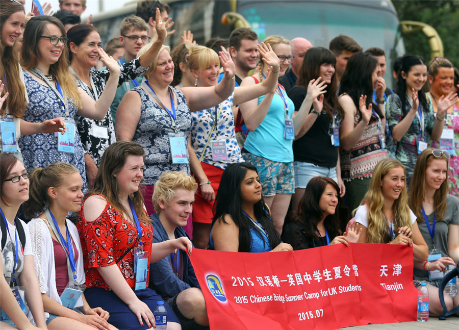 Photo de groupe, pour des étudiants anglais participant à un camp d'été à Tianjing. [Photo/IC]