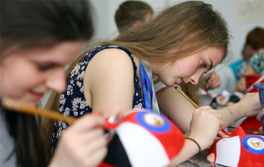 A Tianjin, les participants sont initiés à la décoration de masques de l'Opéra de Pékin, le 16 juillet 2015. [Photo/IC]