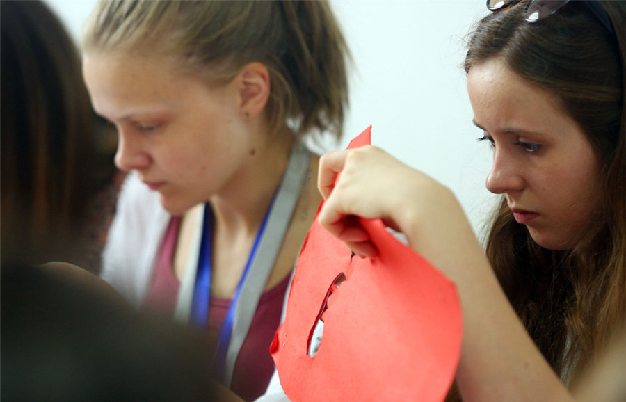 Apprentissage du découpage de papier à Tianjin, le 16 juillet 2015. [Photo/IC]