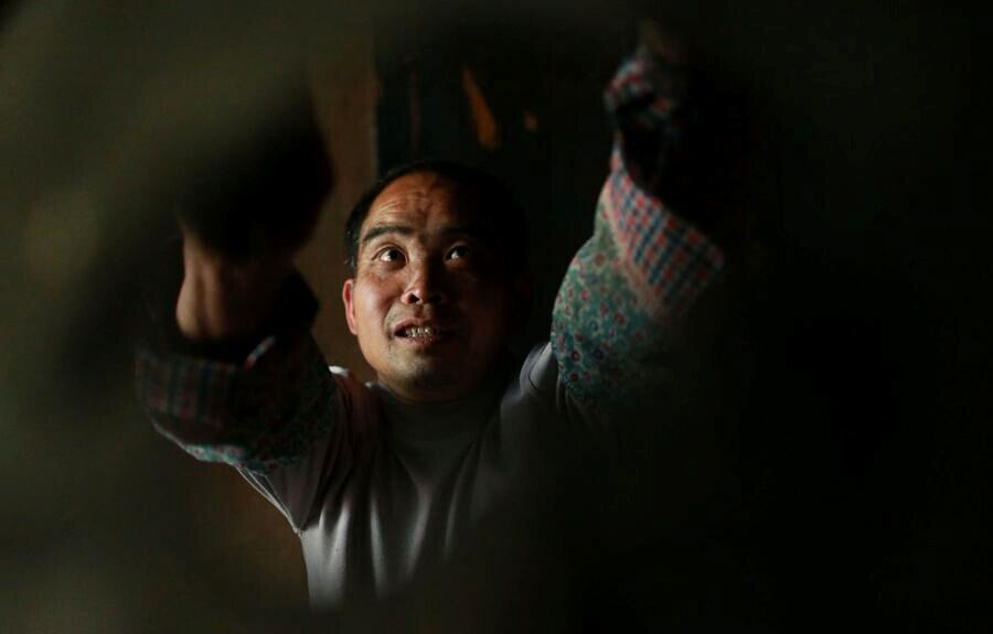 Xia Lianhua travaille à la réparation d'une poêle dans une région montagneuse reculée de Guilin, dans la Région autonome Zhuang du Guangxi, dans le Sud de la Chine, le 20 mai 2015. [Photo / CFP]