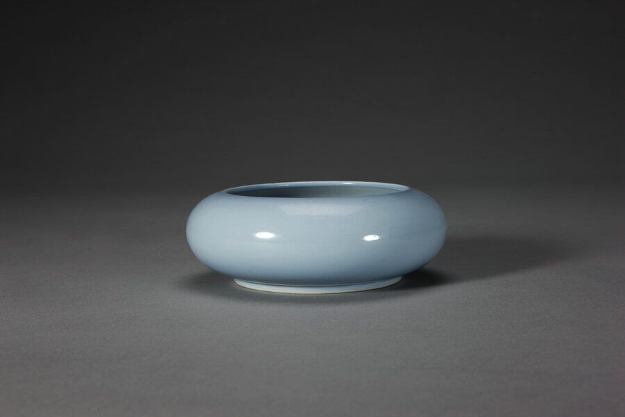 Le récipient à eau à gla?ure bleu ciel est très apprécié en raison de sa couleur et de sa texture, et ce trésor national est également exposé pour la première fois au Musée de la capitale. [Photo / Musée de la Capitale]