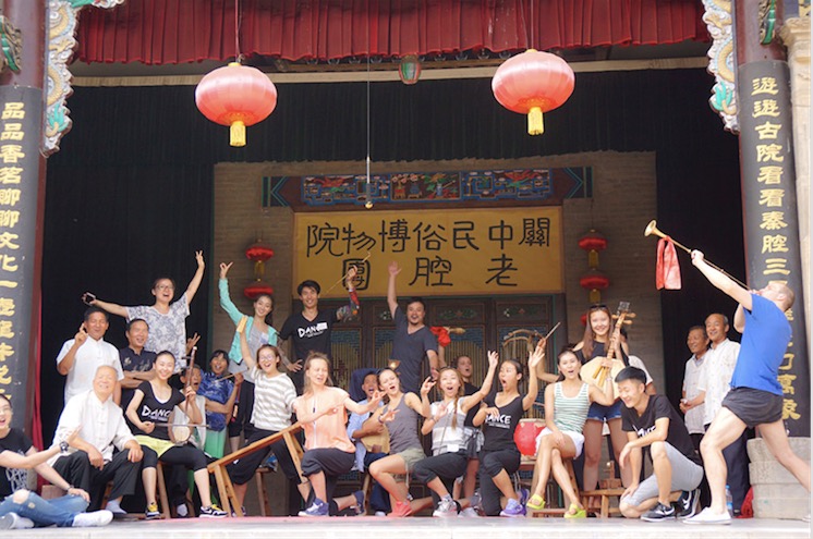 Le groupe des PECCO prennent la pose pour une photo de groupe sur une scène traditionnelle chinoise.