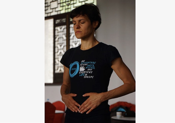 Andrea Opavská, une enseignante de la République tchèque, présente une technique de respiration.