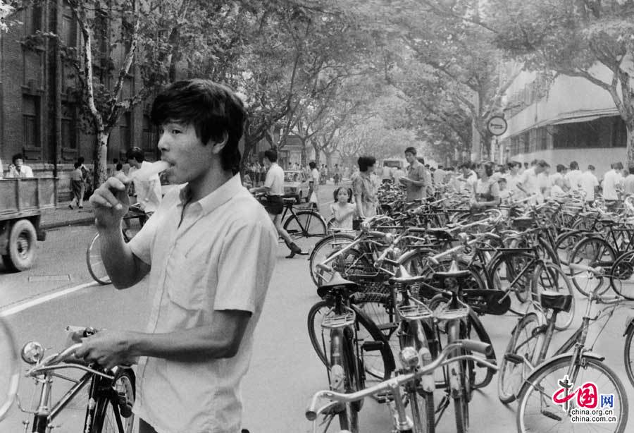 Le 21 juillet 1986, un jeune homme dans la rue à Shanghai.