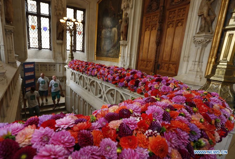 Quelques dizaines d'oeuvres artistiques décorées par environ 100 000 fleurs seront exposées pendant 4 jours, du 13 au 16 ao?t, dans plus de dix chambres de l'Hotêl de Ville.