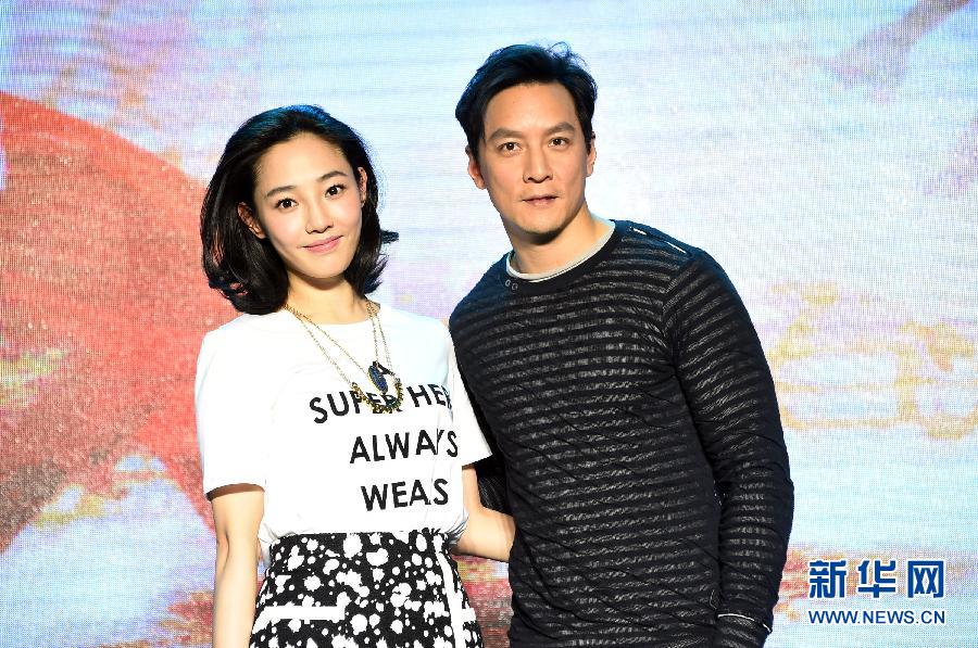 L'acteur Daniel Wu (D) et l'actrice Bai Baihe assistent à la conférence de presse du film "Go Away M. tumeur" à Beijing.