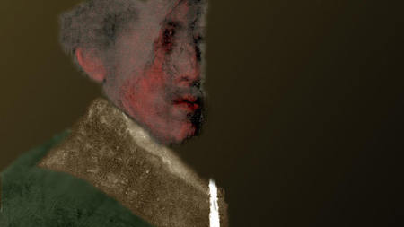 L'image en haut, publiée dans Applied Physics A, est la meilleure reconstruction à jour du jeune homme qui se cache dans le fond du célèbre tableau de Rembrandt. Il a les cheveux bruns, un collier et une cape d'olive, et il est orienté à 180 degrés par rapport vieil homme en tenue militaire. Selon conservatrice du musée Anne Woollet, ce personnage est une étude de caractère faite plus t?t par Rembrandt, un peintre qui était connu pour réutiliser fréquemment ses toiles et panneaux de bois. A présent, les scientifiques continuent d'étudier le travail, espérant reconstituer les vêtements du mystérieux personnage plus en détail et d'explorer la fa?on dont les couleurs dans le tableau final ont changé au fil du temps.