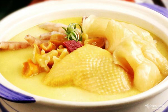 La soupe de poulet à l'astragale est assez nourrissante, et de plusieurs fa?ons. D'une part, l'astragale aide à dilater les vaisseaux sanguins, et ainsi réduire la pression sanguine ; d'autre part, l'astragale cuit avec du poulet peut améliorer le système immunitaire. Cette soupe est bonne pour le c?ur et elle est particulièrement adaptée pour les personnes faibles, comme les personnes agées, les femmes qui vient de donner naissance, et ceux qui transpirent facilement.