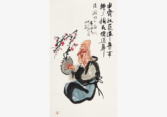 Huang Yongyu, un ma?tre peintre aux multiples talents, né en 1924, est connu pour ses gravures sur bois, ses peintures à l'encre et ses ?uvres littéraires. Sa peinture est un mélange de maitrise artistique et de c?ur na?f, qui a donné naissance à un style intéressant. Le tableau ci-dessus dépeint un célèbre poème, ? la Fête du Printemps se rapproche après l'éclosion des fleurs de prunier ?.