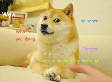 Doge est un mème Internet populaire depuis 2013. Le mème est généralement composé d'une image d'un Shiba Inu, dont le vrai nom est Kabosu, accompagnée d'un texte multicolore au premier plan qui représente le monologue intérieur du créateur, délibérément écrit dans un mauvais anglais.