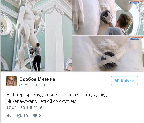 La municipalité a été obligée d'organiser un vote auprès des visiteurs pour savoir s'il faut réhabiller le chef-d'oeuvre de la Renaissance. Les visiteurs de l'exposition peuvent donc participer à un vote jusqu'au 15 ao?t pour choisir si ? David et son anatomie (doivent être) recouverts ? ou s'il ? peut rester dans l'état où Michel-Ange l'a fait venir au monde ?.