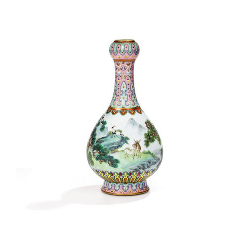 La société Sotheby's a déclaré qu'il s'agissait d'un exemplaire unique en son genre et qu'il avait été fabriqué dans les ateliers de Jingdezhen pour être envoyé à la cour de l'empereur Qianlong (1735-1796).