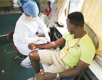 Antoine fait un don de sang. (Photo Wang Yongjing)