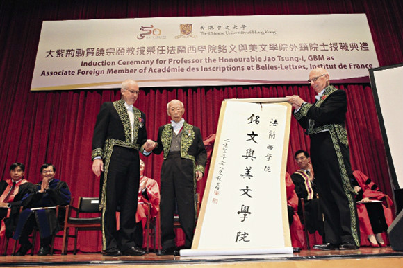 En raison de son état de santé, incompatible avec un vol à longue distance, le 19 septembre 2013, la cérémonie d'intronisation de Jao Tsung-I comme associé étranger de l'Académie des inscriptions et belles-lettres de l'Institut de France a eu lieu à l'Université chinoise de Hong Kong. Pour la première fois de son histoire, l'académie a re?u un de ses membres en dehors de sa célèbre Coupole. à cette occasion, Franciscus Verellen (1952-), directeur alors de l'EPHE et membre à vie de l'académie, avait fait le déplacement pour présider la cérémonie. Dans son allocution, il a résumé l'influence profonde qu'a exercée Jao Tsung-I sur la sinologie fran?aise en termes d'études de Dunhuang, des inscriptions sur os ou carapaces de tortue, de la religion, de l'histoire de l'art et de bien d'autres domaines. Il a également fait remarquer qu'en reconnaissance des réalisations accomplies au cours de sa vie, le professeur Jao Tsung-I a été élu associé étranger de l'Académie des inscriptions et des belles-lettres. Et d'ajouter qu'il ne pouvait pas se permettre de rendre compte, avec simplement quelques brefs commentaires, des contributions incalculables du professeur Jao Tsung-I à la compréhension de l'histoire de la civilisation chinoise et des exploits de l'esprit humain, aussi bien en Orient qu'en Occident.