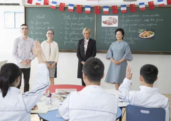 Mme Peng a fait cette remarque lors de sa visite avec Brigitte Macron, épouse du président fran?ais Emmanuel Macron, à l'Ecole des Langues étrangères de Shanghai, affiliée à l'Université des études internationales de Shanghai.