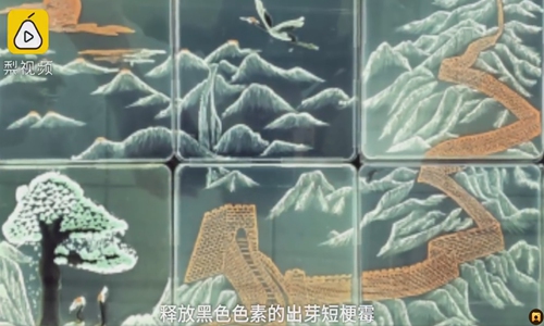 Cinq étudiants universitaires qui étudient la biologie dans la province de l'Anhui (est de la Chine) ont passé des mois à apprendre à utiliser des champignons vivants comme médium pour leurs ?uvres d'art qui décrivent des paysages traditionnels chinois, dont certains présentent l'étendue de la Grande Muraille.