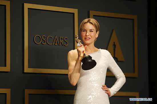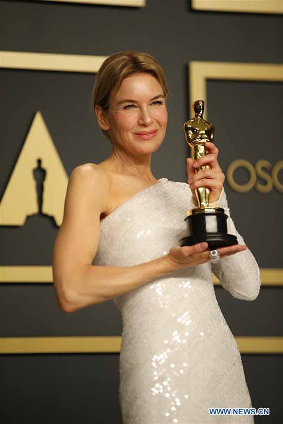 Renee Zellweger a remporté le prix de la meilleure actrice pour son interprétation de la célèbre chanteuse et actrice américaine Judy Garland dans le film biographique dramatique "Judy" lors de la 92e cérémonie des Oscars, qui s'est tenue dimanche soir au Dolby Theatre de Los Angeles, aux Etats-Unis.