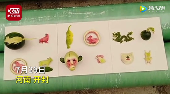 Monsieur Yu a gravé les signes du zodiaque sur une pastèque pendant 5 jours.