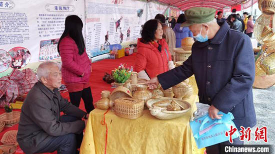 Des touristes choisissent des produits tissés en bambou de Guanyang lors du Festival des outils agricoles du ? 8 février ? à Guanyang, dans la région autonome Zhuang du Guangxi (sud-ouest de la Chine).